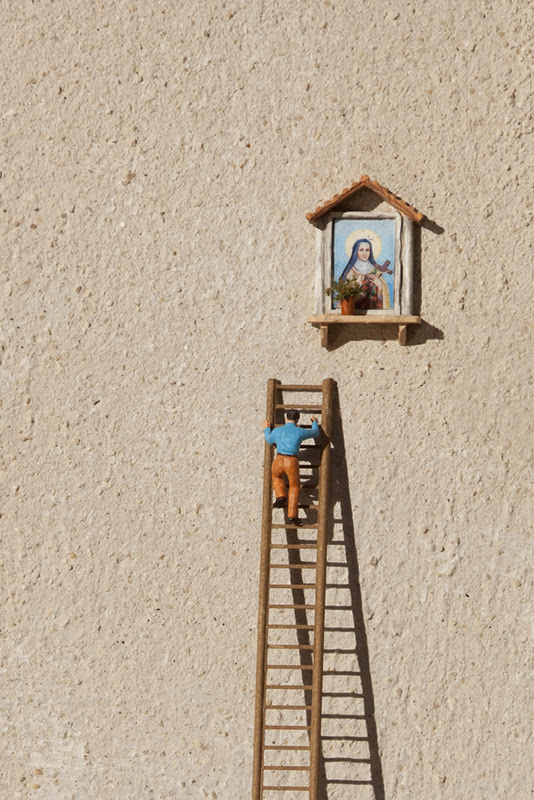 El londinense slinkachu, en su blog Little People - a tiny street art project nos muestra un trabajo de arte urbano ciertamente delicado y curioso. Se trata de pequeñas escenografías inspiradas directamente en la calle. Un microcosmos lleno de detalles e historieta, pequeñas y cuidadas intervenciones con miniaturas que apenas contaminan el entorno y requieren una atención especial del espectador.